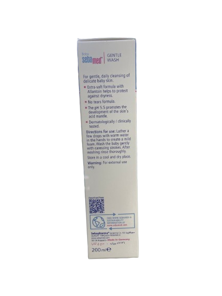 Sebamed Baby Gentle Wash is a mild, soap-free cleanser specifically designed for delicate baby skin. Enriched with allantoin, it helps keep skin soft and smooth while protecting against dryness. This gentle wash maintains the skin's natural pH balance, ensuring optimal skin health.