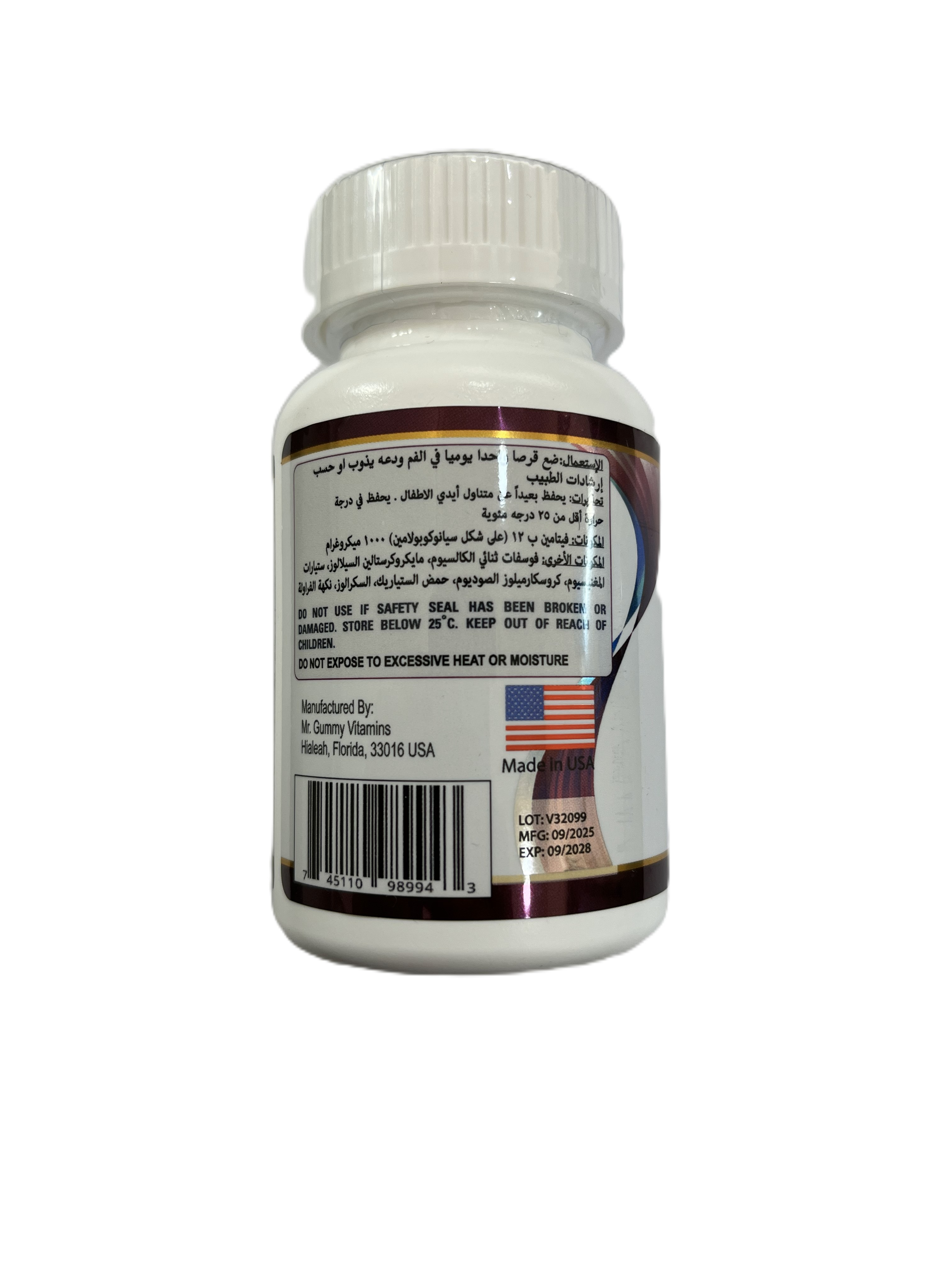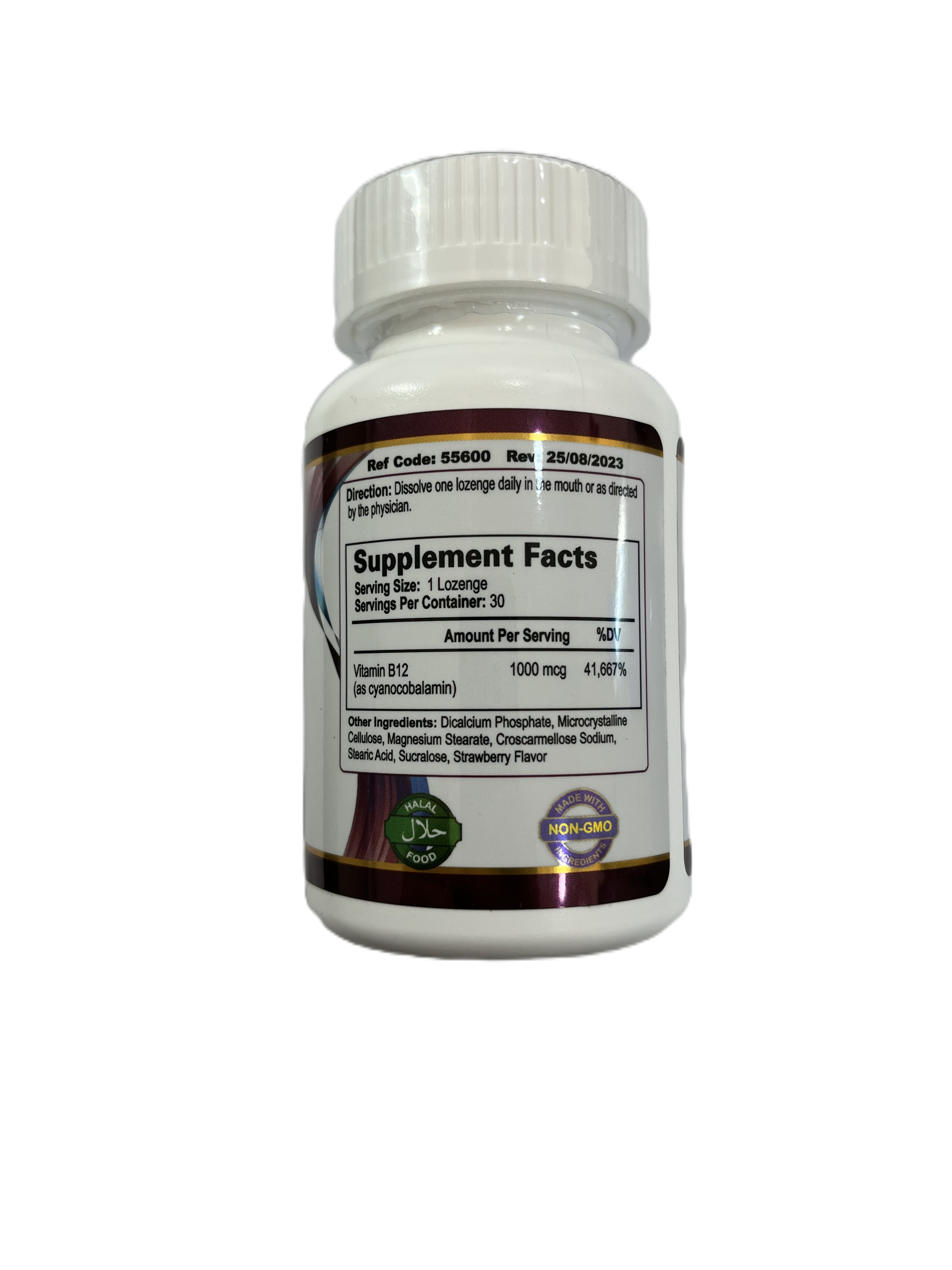 Vitabag B12 1000mcg (30 Capsules) is a high-strength vitamin B12 supplement designed to support energy production, nervous system health, and red blood cell formation. Vitamin B12 plays a vital role in reducing fatigue and supporting normal brain and cognitive function. This supplement is especially beneficial for individuals with low B12 levels, vegetarians or vegans, and those experiencing tiredness or weakness. The capsules are easy to swallow and suitable for daily use to help maintain optimal vitamin B12 levels and overall vitality.